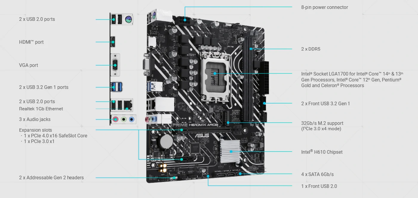 برای اسمبل سیستم خودتون با مادربرد ASUS PRIME H610M-K ARGB فقط کافیه از پیسی مون استفاده کنید.