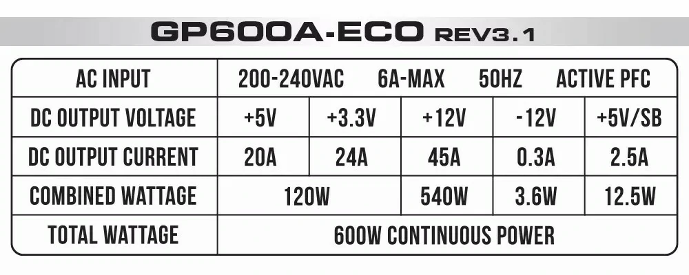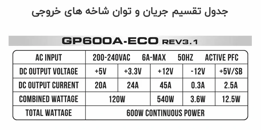 پاور گرین GREEN GP600A-ECO Rev3.1 600W
