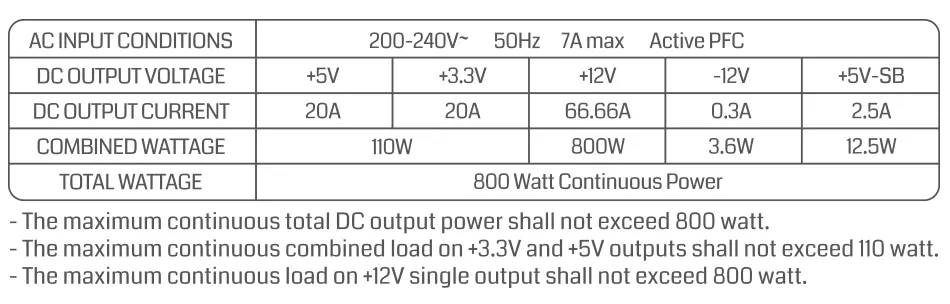 جریان خروجی رشته 12ولت :                                         66.67 آمپر